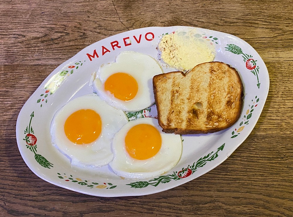 Основа сніданку з 3 яєць, до якої ви можете обрати додатки на ваш смак. Подається з тостами та вершковим маслом.
